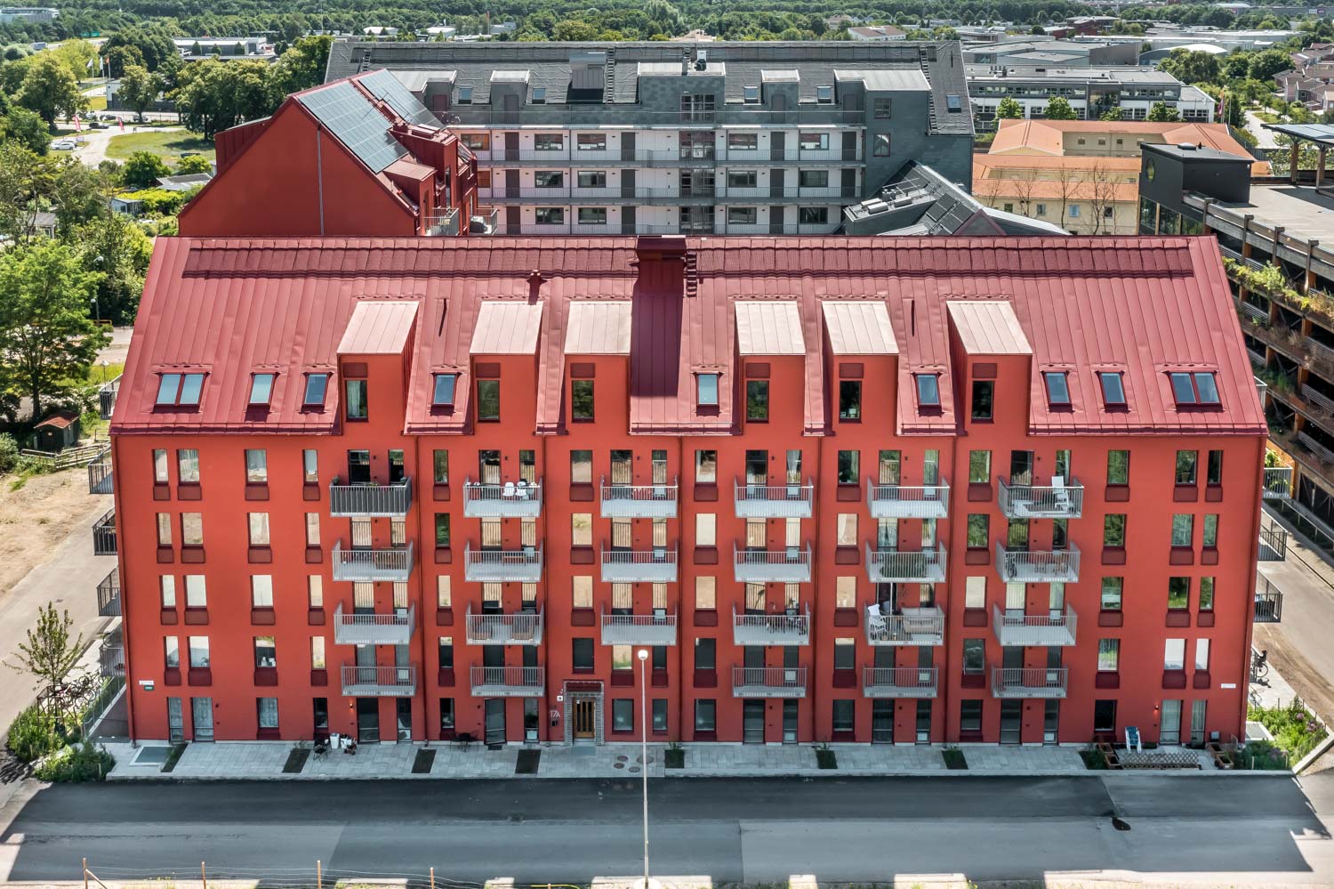 Här har Wästbygg utvecklat och byggt ett modernt kvarter som omfattar 177 hyreslägenheter med hög standard och varierande storlek, från ettor på 29 kvm till fyror på 92 kvm.